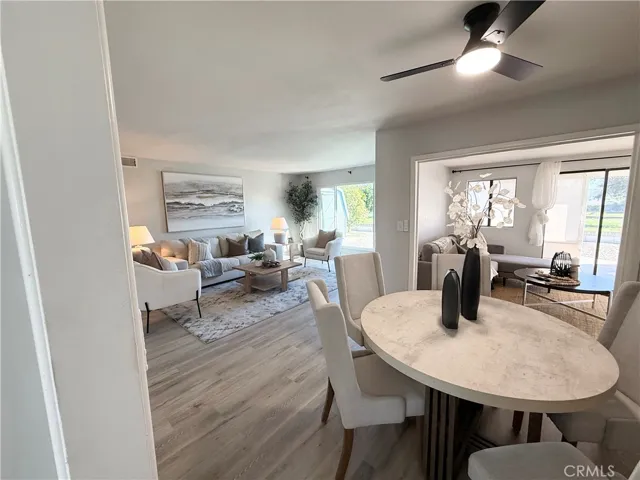 Don’t miss out on this unique beautifully fully renovated 55+ single-family home that boasts 3 spacious Bedrooms, 2 full bathrooms with a very large driveway. Upon entry you will be greeted with a beautifully modernized updated very open floorplan that offers new vinyl/wood flooring, new paint and baseboards throughout the entire house along filled with natural lighting thanks to brand new well-placed double pane windows that provide warm and welcoming atmosphere. The well-appointed kitchen opens up to both very spacious living room and dining area creating an ideal space for both relaxation and entertaining along with having an additional “sun room” attached to the large bonus room. Kitchen also offers all new modern stainless steel energy efficient appliances with new counter tops and brand-new cabinets that offers plenty of cabinet/pantry space. Enjoy outdoor living in the backyard patio area and take in the serene surroundings! The spacious attached 2 car garage with new garage door and motor gives direct access to the home. This 55+ community offers many amenities and activities, including a clubhouse, fitness center and community events…also, very low taxes! This home is conveniently located near shopping, dining and medical facilities, and provides easy access to everything Menifee has to offer!