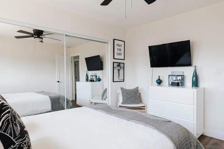 Welcome to your modern coastal retreat in the heart of Ocean Beach! This fully remodeled 3-bedroom, 2-bathroom home has been thoughtfully designed with high-end furniture, designer finishes, and a seamless open floor plan that invites effortless indoor-outdoor living. Sliding glass doors connect the living spaces to both front and back decks, creating the perfect flow for entertaining or relaxing. The gourmet kitchen features an oversized island, stainless steel appliances, and ample storage, opening to the spacious living room with a pool table, large-screen TV, and plenty of seating. The primary suite offers a spa-like bathroom with a dual shower, while two additional bedrooms provide flexible accommodations for family and guests. Outside, a true backyard oasis awaits, complete with a covered jacuzzi, propane BBQ, outdoor dining and lounge areas, turf game zone with bocce, corn hole, and ring toss, as well as string lighting for magical evenings. Additional highlights include central A/C and heat, EV charger, 2-car garage plus driveway parking, laundry, fast WiFi, and kid- and dog-friendly amenities. Ideally located just minutes from the beach, Ocean Beach pier, dining, shopping, and surf, this home offers the perfect blend of modern comfort and coastal charm. Welcome to your modern coastal retreat in the heart of Ocean Beach! This fully remodeled 3-bedroom, 2-bathroom home has been thoughtfully designed with high-end furniture, designer finishes, and a seamless open floor plan that invites effortless indoor-outdoor living. Sliding glass doors connect the living spaces to both front and back decks, creating the perfect flow for entertaining or relaxing. The gourmet kitchen features an oversized island, stainless steel appliances, and ample storage, opening to the spacious living room with a pool table, large-screen TV, and plenty of seating. The primary suite offers a spa-like bathroom with a dual shower, while two additional bedrooms provide flexible accommodations for family and guests. Outside, a true backyard oasis awaits, complete with a covered jacuzzi, propane BBQ, outdoor dining and lounge areas, turf game zone with bocce, corn hole, and ring toss, as well as string lighting for magical evenings. Additional highlights include central A/C and heat, EV charger, 2-car garage plus driveway parking, laundry, fast WiFi, and kid- and dog-friendly amenities. Ideally located just minutes from the beach, Ocean Beach pier, dining, shopping, and surf, this home offers the perfect blend of modern comfort and coastal charm.