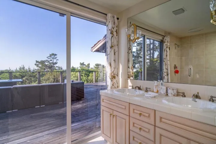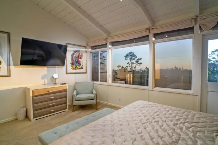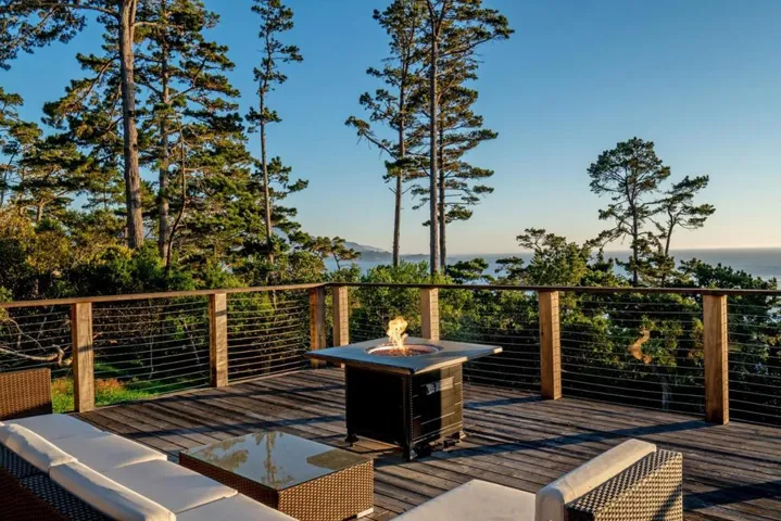 Located on the ocean side of Padre Lane near The Lodge and Pebble Beach Golf Course, this single-level Post-Adobe home sits on one of the finest view lots in Pebble Beach. An expansive southwest-facing deck showcases sweeping views of Point Lobos and the Pacific coastline extending to Big Sur. Upon entering, you are welcomed into a comfortable living room with vaulted ceilings and hardwood floors. The space opens to the dining area and kitchen, with sliding glass doors that lead to outdoor living areas. The spacious, sun-splashed, ocean-view lot is the star of the show, offering exceptional potential. The home features three bedrooms, four bathrooms, and 2,750 square feet of light-filled living space designed to enjoy the idyllic Monterey Peninsula climate.