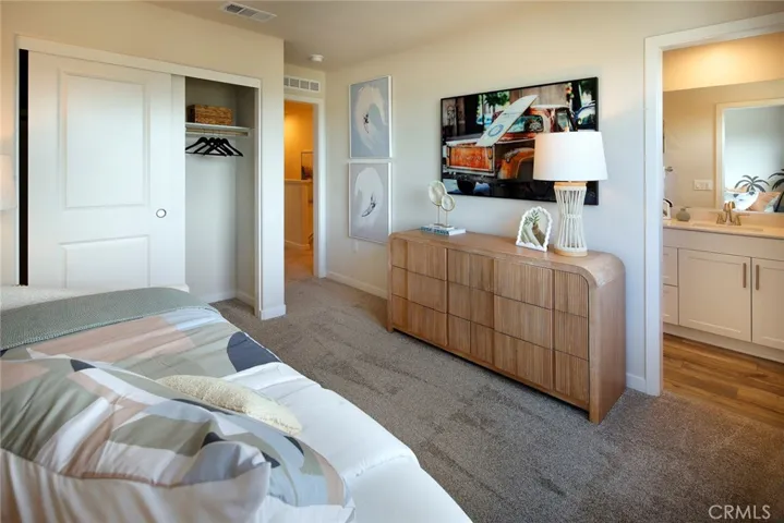 Welcome to Sagecrest by Century Communities! This beautiful Tri-level Gated townhome community is located in the heart of Riverside close by the 91 freeway right off Van Buren Blvd. very close to shopping, restaurants and California Baptist University as well as UC Riverside. After entering in from your private enclosed patio, heading up to the second floor you enter a spacious Kitchen with large island and dining area that has a private balcony off Livingroom. The kitchen features “Mezzo White” cabinets, quartz counters and back-splash. The second level also includes a bedroom and full bathroom. Going up to the third level you will find an Owner’s Suite which includes bathroom with double sinks, walk-in shower and walk-in closet. Finishing the 3rd level there’s an additional bedroom with its own private full bathroom and walk-in closet. Laundry room is also conveniently located on third level. Come see this amazing community in person, Sagecrest is a Gated Community and will include a playground, dog park, shade structures and BBQs and more!