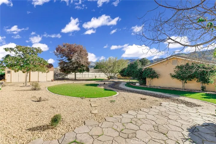 You have to see this three bedroom, two bathroom home with a two bedroom, one bathroom casita. Yes, that is five bedrooms and three bathrooms total. Unique for sure! Come see the open floor plan and large backyard, including two storage sheds and mature landscaping. The low maintenance yard is covered with artificial turf, gravel and concrete walkways. Use the casita as an office, guest house or for your extended family. It is located just steps away from the main house. Hard surface flooring, carpet in bedrooms. Clean white tile counters, a handy laundry room and space for a small table in the eat-in kitchen. There is a formal dining room, carpeted, updated hall bathroom in the main house. Primary suite has a walk-in closet and roomy ensuite. Fenced-in patio just outside. Quiet neighborhood with lots of space. Just below the mountains where you can visit Idyllwild and other mountain communities. You will love the area and the home. Consider making this your new home.