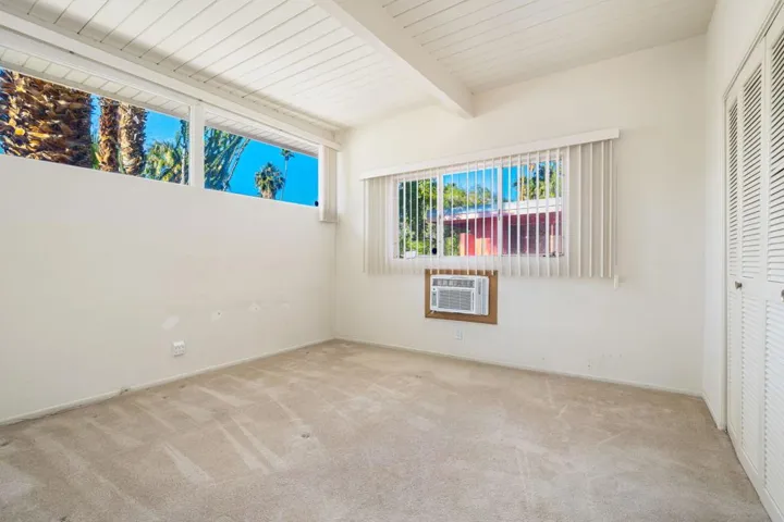 Set among 84 iconic mid‑century homes in Palm Springs’ Little Beverly Hills, this classic and timeless 1958 home is located in a late-1950s enclave featuring homes built by both SonGold/Jack Meiselman and the Alexander Construction Company. Thoughtfully held by the original owner since 1958 and now available for the first time, the property retains its unspoiled mid‑century character, including tongue‑and‑groove ceilings, exposed post‑and‑beam construction, clerestory windows, and the original architect’s footprint without expansions or awkward additions. Sitting on a generous corner lot with low‑maintenance desert landscaping, the home features a classic three‑bedroom, two‑bath layout, vintage tile bathrooms in period‑perfect pink and aqua, an efficient galley kitchen, and a deep covered patio that frames sweeping southern and eastern mountain views from the backyard leisure area plus western mountain views from the front. There is ample room to design your dream pool and outdoor entertaining spaces, along with a carport and large enclosed storage area for bikes, golf gear, or hobby space. This south Palm Springs gem is offered in its present ”as is” condition and priced to reflect its largely original state, creating a terrific opportunity for buyers or investors looking to restore and customize a true mid‑century classic in highly sought‑after Little Beverly Hills. Fee land (no land lease); buyers should verify square footage, lot size, and any desired vacation‑rental permits and city requirements. *Some photography virtually staged for illustrative purposes only.