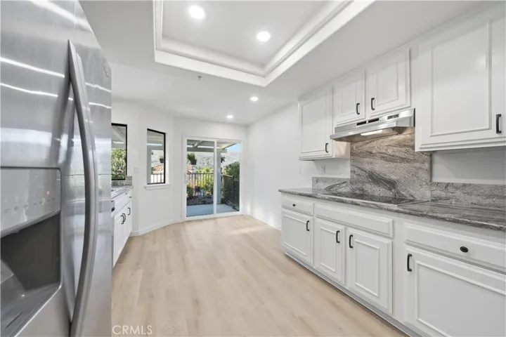 Nestled within the lush, gated community of Vista Valley, this intimate enclave of just 129 homes sits atop a picturesque landscape surrounded by multimillion-dollar residences and within walking distance of The Havens Country Club. Mature, tree-lined streets and a scenic pathway with views of the award-winning Ted Robinson Sr. golf course lead you to this desirable corner-lot home, positioned along the greenbelt. With no neighbors beside or behind you, the elevated backyard offers exceptional privacy and the perfect place to unwind and enjoy breathtaking sunset views. The home has been completely renovated throughout, beginning with DuraLux waterproof luxury vinyl plank flooring backed by a lifetime residential warranty, complemented by new baseboards and fresh finishes. The spacious living room features vaulted ceilings, abundant natural light, and a wet bar—ideal for entertaining while taking in tranquil backyard views. Both bedrooms are generously sized, and the formal dining room offers flexibility to serve as a third bedroom or home office. A dedicated laundry room includes a washer and dryer for added convenience. The updated kitchen showcases stainless steel appliances, including an oven, built-in microwave, refrigerator, and sink, along with a brand-new hardwired 5-burner electric cooktop, freshly painted cabinetry, new hardware, and an elegant dining room chandelier.