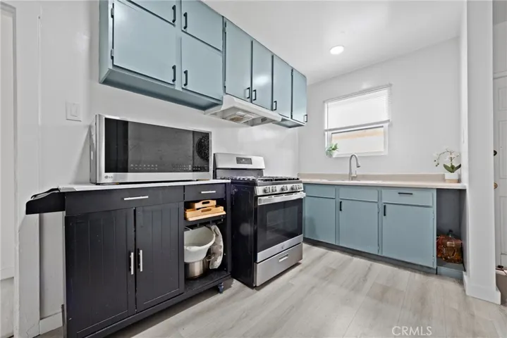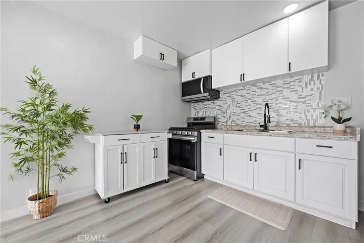 Behind the main house is a separate building with two upgraded 1-bedroom, 1-bath units. These units feature smooth ceilings, recessed lighting, low-maintenance vinyl flooring, modernized kitchens with stainless steel appliances, and in-unit laundry hookups. Each unit has its own address and is separately metered for gas and electricity, enhancing operational efficiency and tenant appeal.