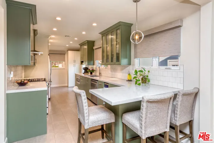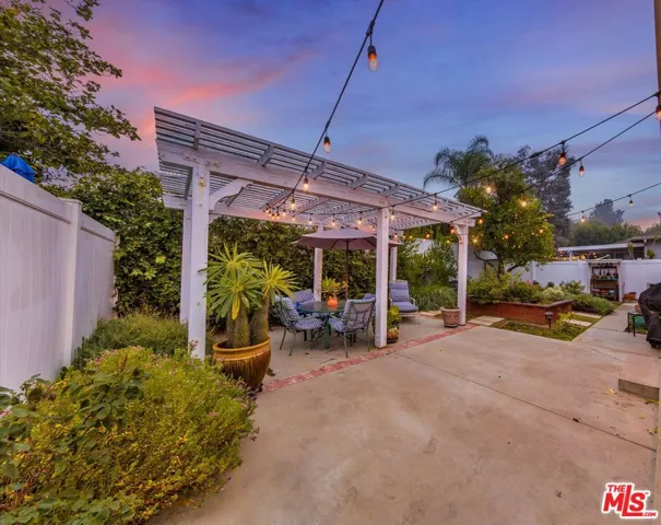 Charming curb appeal welcomes you home with a classic white picket fence, drought-tolerant landscaping, and colorful flowering plants in the heart of the vibrant Valley Village/Valley Glen community. A formal entry opens to an expansive living and dining room combination, anchored by a cozy fireplace perfect for both everyday living and entertaining. The newer kitchen features updated (2022) forest green cabinetry, all-new hi-end stainless steel appliances (incl. LG Probake 5-burner stove and Kalamera wine fridge), and an open layout with an attached laundry room for added convenience. The home offers 3 bedrooms and 2 baths, including a serene primary suite with a beautifully remodeled bathroom completed in 2022, designed as a true hotel-like oasis w/gray-green subway tiles in shower/tub. The converted garage has been thoughtfully transformed into a studio with built-in cabinetry, ideal for a home office, playroom, or creative space, and can easily be converted back to a functional garage if desired. Drop-down ladder in hallway provides access to attic for storage. The beautifully laid-out backyard is perfect for relaxing or hosting, featuring a pergola, patio, a beloved orange tree, and water-wise landscaping with succulent plantings, flower beds and vegetable gardens. Located near Studio City and both canyons, Valley Glen/Valley Village is a vibrant hip community known for many Houses of Worship, kosher shopping and religious institutions, as well as great eateries, cafe’s and ease of reaching downtown or the Westside, offering the perfect blend of neighborhood charm and urban convenience. SEE AGENT REMARKS FOR OFFER DEADLINE INFORMATION