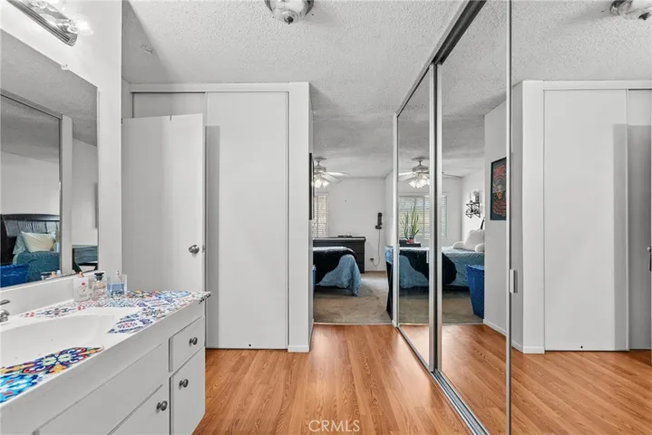 Welcome to Lakeshore in Valencia! This bright upper-level 2-bedroom, 2-bath home offers 1,041 sq ft of comfortable, easy living with a great open layout. The living and dining area is filled with natural light and features recessed lighting, a ceiling fan, and sliding glass doors that open to a private balcony—perfect for morning coffee or relaxing evenings. The kitchen is both functional and inviting with granite countertops, a breakfast bar, white cabinetry, and stainless-steel appliances—ideal for everyday meals and entertaining. Both bedrooms are generously sized with flexible options for guests, a home office, or workout space. A spacious vanity area and well-appointed baths add convenience, while the mix of tile and wood-style flooring creates a clean, welcoming feel throughout. Assigned parking included. HOA: $542.53/month, covering water, trash, gas, insurance, ground maintenance, and security. Enjoy resort-style amenities including a ball play area, two pools, spa, wading pool, tennis courts, pickleball court, and a half basketball court.