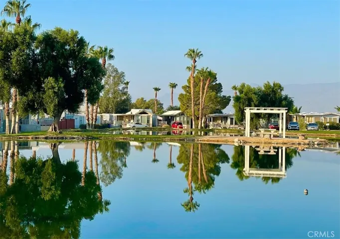 The cozy backyard is also paved and features installed cloth lines, allowing you to dry clothes and towels naturally in the warm California sunshine. A convenient storage shed provides space for tools and supplies, and the washer located inside the shed offers a “luxury” that most park model homes do not have. The home also includes a central HVAC system that keeps you cool in the summer and warm in the winter.