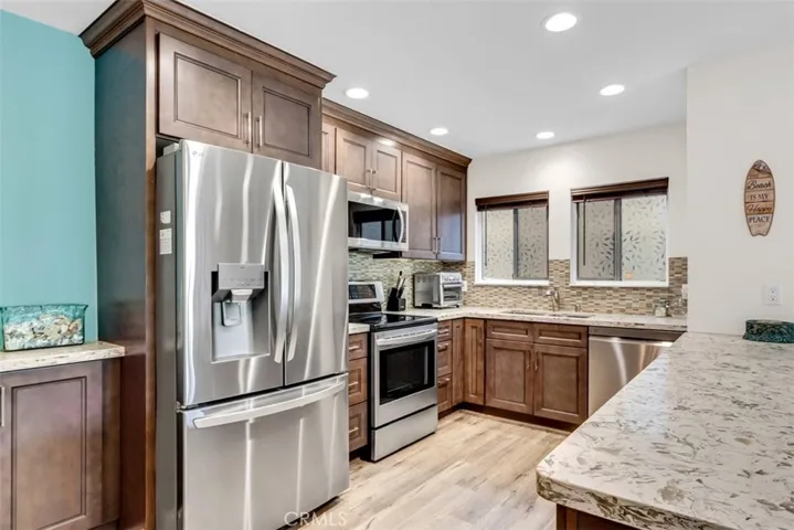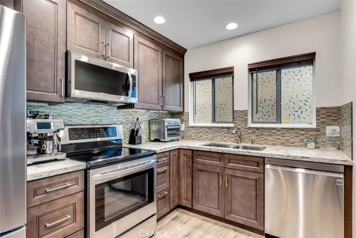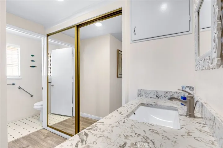 This is the most desirable configuration in Laguna Woods! 2-bed, 2-bath CASA LINDA WITH NO STEPS! Nobody above you and only 1-shared wall! A fabulous greenbelt greets you as you walk to this unit from the carport. This amazing home has it ALL! Heat pump with Air Conditioning to keep you cool, as well as multiple ceiling fans overhead. Remodeled Kitchen with wall removed, dishwasher, quartz counters, soft close drawers, custom backsplash, Newer Vinyl Plank floors, designer paint, baseboards, mirrored closet doors and a washer / dryer combo! Brand new stainless refrigerator has an ice maker that makes huge round ice cubes! HOA Maintained appliances to include a stainless Oven, Cooktop and dishwasher. Don’t miss the Smooth ceilings and custom built in hutch with storage! Bathrooms feature custom fixtures and quartz counters; guest shower has new glass enclosure. Massive front balcony is accessible from both the living room and the guest bedroom. This area is great for relaxing and has some privacy / shade provided by a lush mature tree in front of the home. The building has recently had a new paint and the decks / walkways were also resurfaced at that time. This home is immaculate and ready to move into today. Enjoy all the amenities of this active 55+ retirement community with 2 Championship Golf Courses, Tennis, Swimming, over 300+ Active Social Clubs, Pickleball, an Equestrian Center, 3 Fully Equipped Gyms, 5 Heated Swimming Pools, A Library, Restaurant 19 and Complimentary Bus Transportation that makes it easy to stay Independent. Laguna Woods Village is in the Heart of South Orange County just minutes from Beautiful Laguna Beach, 5 Star Restaurants and World-Class Shopping. Laguna Woods Village has the type of living where you can simply lock your front door and go on vacation for weeks on end and not worry about your place. The HOA includes so much, to include Insurance on the structure, Water, Trash Service, Basic Cable TV, Exterior and some interior maintenance, Exterior Landscaping Maintenance and all of the other amenities of course. Come, relax and enjoy the next phase of your life here in Laguna Woods Village. Carport 2047 space 5.