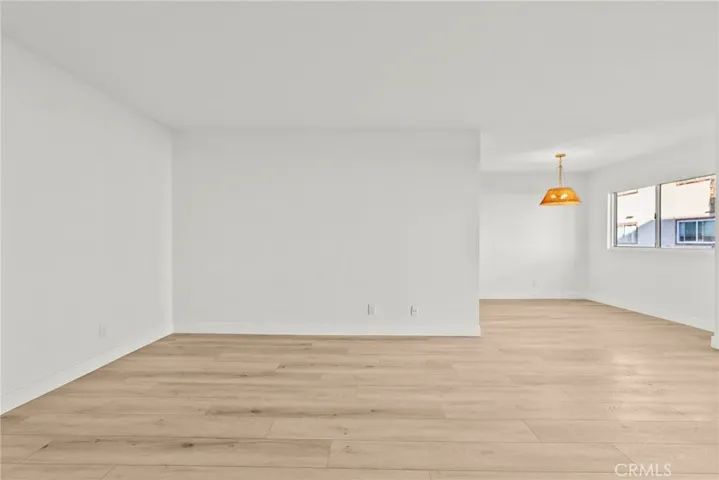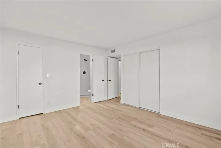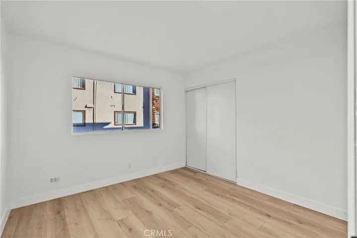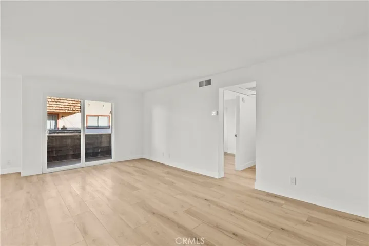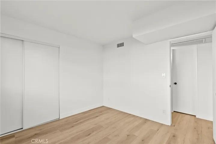 The unit features an entirely new interior, including fresh paint, laminate plank hardwood flooring, and a fully remodeled kitchen. The kitchen updates include new shaker cabinets, quartz countertops, and a tile backsplash. The bathroom has also been refreshed with a new vanity, tile shower walls, fixtures, and lighting. The condo is a nice size and includes a sliding door leading out to a private balcony.