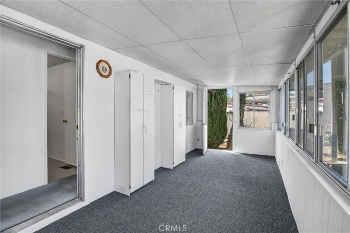 This unit has 2 bedrooms and 1 bath plus a large enclosed sun room patio space for all your storage needs! Both the interior and exterior of the unit have been freshly painted and exterior steps and patio have been newly carpeted. The kitchen and living area have vaulted ceilings and there are plenty of windows that provide natural light. The covered carport leads you to a second entry way that allows you to enter the home from the back enclosed patio that has brand new carpet and two built in storage areas. There is also an oversized shed in the back easily accessible by stone paper walkway. The park is a 55+ community that has has a clubhouse and pool with regularly scheduled activities for residents.