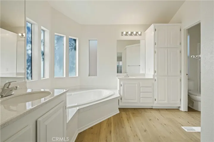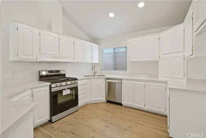 Fully Remodeled 3-Bedroom Home in Canyon View Estates- Every inch of this home has been thoughtfully updated to reflect a clean, modern, and neutral aesthetic that’s both stylish and functional. Step inside to find fresh interior paint, new luxury vinyl plank flooring, and new plush carpet in all bedrooms. Contemporary light fixtures and ceiling fans have been installed throughout, adding a warm, modern touch. The open-concept layout connects the spacious living room and kitchen, creating a cohesive and inviting space ideal for entertaining and everyday living. The living room features a cozy tile fireplace, a new lighted ceiling fan, and direct access to the covered backyard patio—perfect for indoor-outdoor living. The kitchen shines with bar-height counters for entertaining, refinished countertops, crisp white painted cabinets, recessed lighting, and brand-new stainless-steel appliances, including a new sink and fixtures. Upgraded blinds throughout complete the look. The front bedroom enjoys abundant natural light from a charming bay window, along with new carpet, fresh paint, and a stylish ceiling fan. Guest bedroom two is equally updated with fresh paint, updated blinds, and new carpeting. The guest bathroom has painted cabinetry, refinished countertops, new flooring, and a beautifully updated shower/tub combo. Retreat to the spacious primary suite, which includes direct access to a backyard oasis featuring a covered patio, fresh sod, colorful garden planters, and a beautiful city view. The en-suite primary bathroom includes luxury vinyl plank flooring, white cabinets, refinished counters, a private toilet and shower area, completing the neutral and serene aesthetic. This home blends modern updates, thoughtful details, and peaceful outdoor living. Schedule your private showing today! A direct access two-car garage completes the package with ample parking and storage. This home is located in Canyon View Estates and has a current monthly land lease of $1,778.20 per month which includes community amenities such as a 24 hour gate, usage of 2 pools and spa, 2 sport courts, and 2 play areas. Canyon View also offers a community clubhouse and RV storage. Home is located near parks, bike & walking paths, shopping & entertainment, and schools. Easy freeway and Metro-link access. Home is a must see! Please submit pre-approval along with proof of funds with offer. Buyer to verify all before close of escrow. Welcome home!