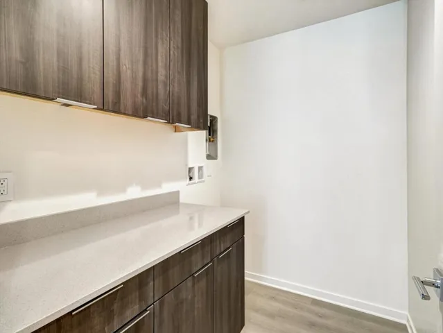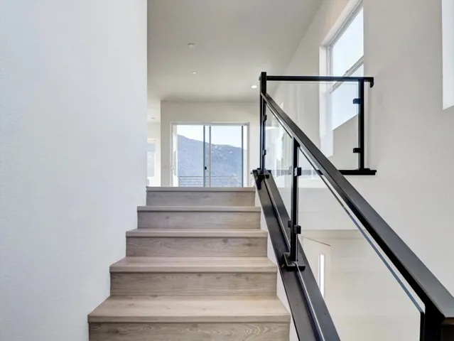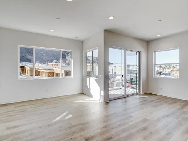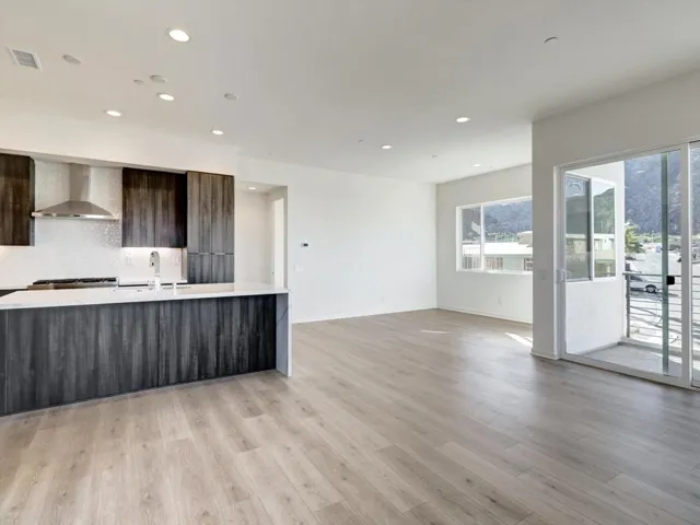 Welcome to Retro at E’lan Community and its offering of a mid-century modern townhome. This beautiful townhome features 1750 sqft of spacious living. This corner unit offers convenient location to the community pool and spa. This unit offers mountain Views from the living room, primary bedroom, and outside deck. Enter into 1st floor flex room and full bathroom which can be used as an office or gym! Head upstairs to the open family/living room and large kitchen featuring S/S Appliances, plenty of counter space, and island covered with upgraded quartz with water fall finish at island. Primary bedroom and bath with conveniently spacious walk in closet and dual vanities. Head down the hall to cozy guest bedroom with full bathroom. The home has Georgius Tile & Luxury Vinyl Plank Flooring throughout. This energy efficient home comes with Solar that is paid for and not leased. Paved shared driveway entering into 2 car garage offers direct access to your home. If you have a dog, you can enjoy the dark park included at elan. If you enjoy the nightlife, you are within walking distance to downtown South Palm Springs and all the restaurants and entertainment to keep you and your guest happy. Plenty of hiking trails starting with the Tahquitz Hiking Trail. The unit is part of a 5-unit building. Come be part of the story at Retro at E’lan Downtown Palm Springs! Some pictures are of Community Pool and Common areas!