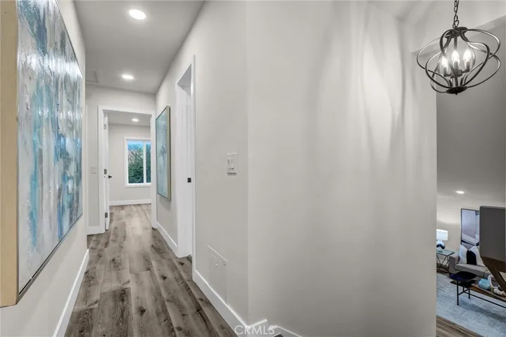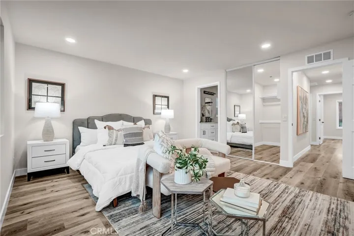 The upgraded kitchen showcases new cabinets and countertops, while all bathrooms have been tastefully remodeled with tile flooring. The home includes new laminated flooring throughout, all-new light fixtures, and recessed lighting that create a bright, modern feel.
