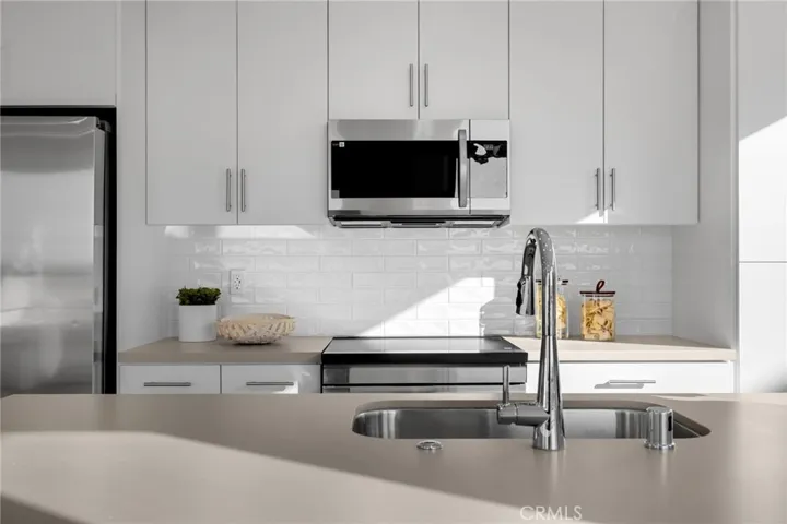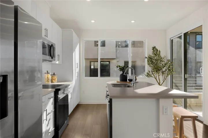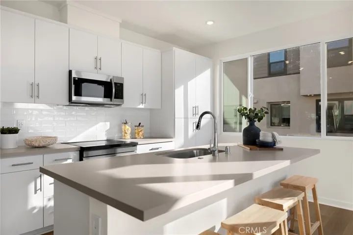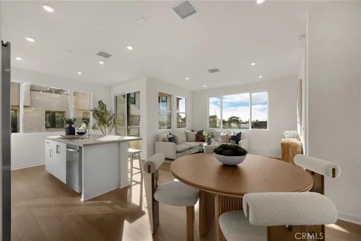 Welcome to this brand-new, three-story townhome located in an intimate enclave of just 44 homes in the heart of Anaheim—designed for modern professionals who value smart layouts, low maintenance living, and unbeatable convenience. This 2-bedroom, 2.5-bath residence with a 2-car attached garage offers a thoughtfully planned floorplan that maximizes both function and natural light. The first level features direct garage access, while the main living level opens to a bright, open-concept kitchen, living, and dining space—perfect for both everyday living and entertaining. The kitchen is anchored by a large center island, ample cabinetry for storage, and flows seamlessly to a private balcony, creating an ideal indoor-outdoor workspace or relaxation zone. Upstairs, you’ll find two generously sized bedrooms, each with its own bathroom—ideal for roommates, guests, or a dedicated home office setup. High ceilings, abundant windows, and a smart, efficient layout make the home feel both airy and purposeful.