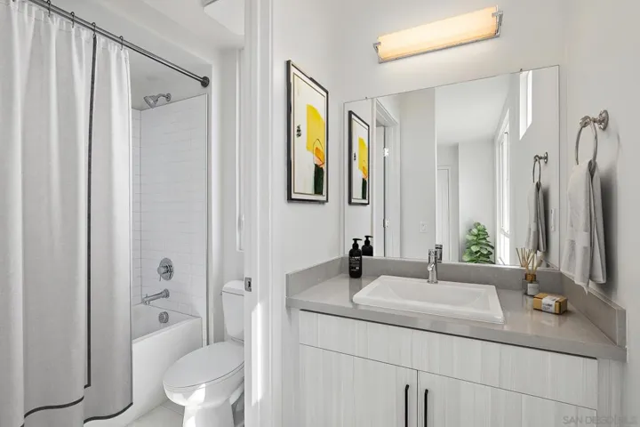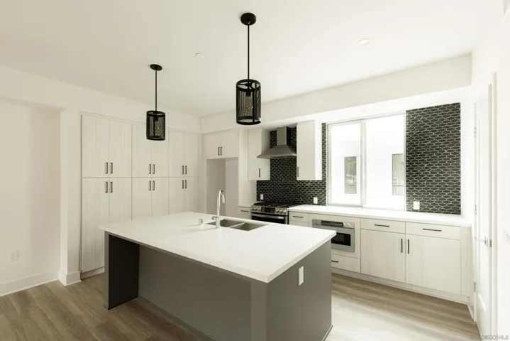 Craft by CityMark in Golden Hill new construction in 2022. Residence #4 is a three-story townhome that offers every modern amenity. Move-in ready with upgraded flooring, backsplash and Quartz countertops, generous cabinet space, stainless steel GE Profile appliances, engineered wood-like flooring, and a large private outdoor patio off your living room! The thoughtfully designed layout promotes frequent gatherings with an open great room, floating dining, and a big center island with additional counter seating. Light and bright with lots of windows and VIEWS. Enjoy the convenience of your attached 2 car garage, full size washer and dryer and central AC and heat. Across from the 32nd St Canyon trailhead, and just half a mile from Downtown San Diego, living at Craft sets up a life that’s close to the restaurants, nightlife, and activities you love.