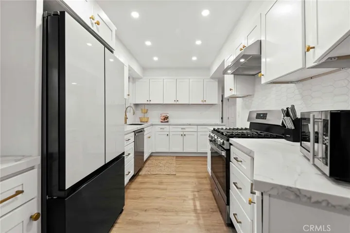 The home was fully remodeled in 2023 and features a bright, open layout with new shaker-style cabinetry, luxury vinyl plank flooring, recessed lighting, quartz countertops, and a custom-designed shower. The spacious primary suite opens directly to the backyard, providing your own private retreat.