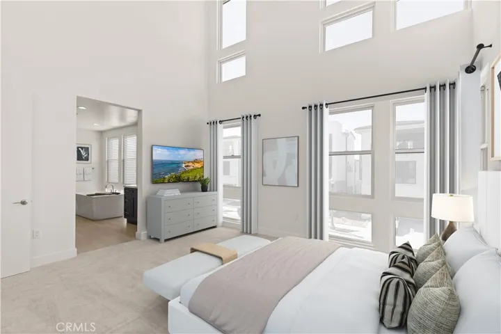 Welcome to Elevate, a luxurious Toll Brothers new community in Great Park Neighborhoods, Irvine, ideally located within walking distance to Cadence Park School (K-8) and Portola High School, and adjacent to the new Great Park Framework with trails, lakes, a museum, and more. Easy access to freeways and shopping. Homesite 30 is a new construction home that is situated on a west facing, 4,568 sq ft lot, and walking distance to all that Great Park neighborhood has to offer including 7 thoughtfully designed parks, 6 resort-style pools, walking and bike trails, and community gardens. This stunning Melina floorplan features 6 bedrooms, with 5 bathrooms, and is 3,892sq. ft, with a 2-car garage. Upon entering the home, a bright and welcoming foyer leads to an open-concept great room and kitchen, showcasing extended, smooth white cabinets, upgraded quartz counters and full backsplash, stainless steel Wolf appliances and sub-zero, stainless-steel refrigerator. The great room features 20′ vaulted ceilings, open concept dining, and entry to your private backyard through a multi-slide stackable glass door, great for entertaining. The second level primary bedroom features luxury vinyl plank flooring, in-suite bathroom with freestanding tub and large glass shower with porcelain tile walls. Highlights of the home include a gourmet kitchen with WOLF appliances, a Sub-Zero refrigerator, and designer-selected finishes throughout. This innovative floor plan design features two stories living plus a 3rd-floor bonus loft with a deck, 2 large bedrooms, and full bath—perfect for entertaining or a private retreat. Solar System included- purchased. Homesite 30, is move in ready now. Interior Photos provided are of the model home.