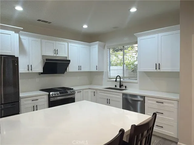 The kitchen is thoughtfully designed with quartz countertops, stainless steel appliances, and a large center island, providing ample workspace for cooking, dining, and entertaining. The home is available with essential furniture and appliances, including bed frames, mattresses, dining tables and chairs, televisions, and a fully equipped kitchen—making it an ideal move-in-ready rental option.