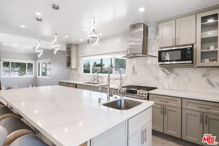 BEST PRICED HOME IN THE DIRECT AREA. Welcome to this gorgeous residence, recently updated with high-end finishes and equipped with smart home technology, nestled in the heart of North Hills! This beautifully renovated pool home offers three spacious bedrooms and two luxurious bathrooms within 1,806 square feet of living space, set on a generous 7,917 square foot corner lot in a peaceful cul-de-sac.Upon entry, you are greeted by an abundance of natural light that pours into the open and thoughtfully designed floor plan, featuring stunning floors and recessed lighting throughout. The inviting living room is bathed in sunlight and boasts a cozy fireplace, creating the perfect space for relaxation and gatherings. Just off the living area, the dining space flows effortlessly into the chef’s kitchena true culinary haven. With modern appliances, sleek cabinetry, a large kitchen island, and even a wine cooler, this kitchen is ideal for both everyday meals and entertaining.The three generously sized bedrooms offer comfort and tranquility, while the two bathrooms are tastefully designed with high-end finishes. Outside, step onto the patio and enjoy the sparkling pool, an oasis for outdoor living and entertaining- ideal for private or large gatherings! This home is a rare find, offering both style and functionality, with the potential to expand your living space by converting the detached garage into an ADU. Make this smart home your own and enjoy the perfect blend of comfort, convenience, and luxury in a prime location. Located near CSUN, top rated schools, parks, dining, shopping and easy freeway access. . This is a must see! BEST PRICED HOME IN THE DIRECT AREA- Immediate equity!