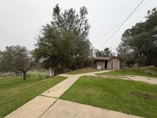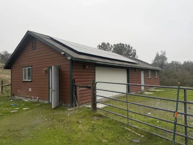 Private 10-acre ranch-style retreat with owned solar! This beautifully maintained two-story log home offers 2,064 sq ft with 3 bedrooms and 2 bathrooms on a fully usable, fenced and cross-fenced parcel. Enjoy peace, privacy, and wide-open pasture views while remaining conveniently close to town. Property features include a barn with hay storage, pasture areas ideal for horses or hobby farming, raised garden beds, chicken coop, and mature fruit and olive trees. Excellent private domestic well with a triple filtration system. The home showcases high ceilings, a spacious upstairs primary suite, wood-burning stove, central heat and air, and indoor laundry room. Detached two-car garage includes an unfinished in-law space above, offering future potential. Located near New Hogan Lake with easy access to outdoor recreation. A rare opportunity to own a true country property with usable acreage, infrastructure, and energy efficiency.
