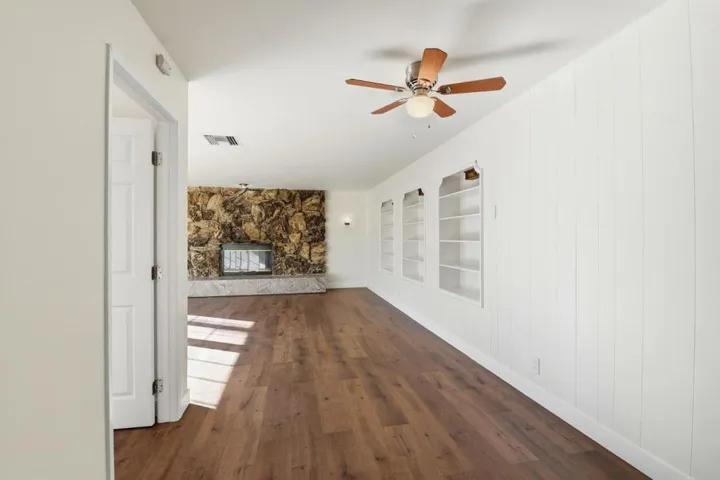 This lovely 4-bedroom, 2-bath home pairs natural light with warm finishes. Sunlight fills the main living area through large sliding doors, bringing a soft glow across the wood-style flooring. A striking stone fireplace adds texture and character to the room, while built-in shelving offers a practical spot. Your kitchen includes generous cabinetry, a gas cooktop, and a wide sink beneath bright windows. Tile flooring and spacious counters support meal prep, and the layout flows naturally toward the living and dining areas. Heat and central A/C help maintain a comfortable atmosphere throughout the year. All four bedrooms offer adaptable layouts for rest or work, and the two baths are arranged for easy day-to-day use. Two parking spots in the garage provide secure storage and added convenience, while automatic sprinklers help maintain the outdoor space with less upkeep. Set in a convenient Van Nuys location, you are within easy reach of Balboa Park, Lake Balboa, and the Sepulveda Basins walking paths and sports facilities. Nearby Ventura Boulevard brings a variety of restaurants and cafés, and you will find groceries, shopping, and everyday services minutes away at Sherman Oaks Galleria and along Van Nuys Boulevard. Utilities included in rent: landscaping, trash, sewage.