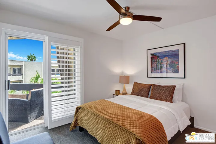 FURNISHED 2+1 condo located on the top (3rd) floor of the Biltmore Phase III! Available for 12 MONTH LEASE (or longer) only – NO SHORTER TERMS. Located in a fantastic South Palm Springs location close to Koffi South. Don’t miss this one! This view condo has both convenient elevator and stair access. Large covered balcony with slider access to both bedroom and living room. The comfortable outdoor living space with furnished seating expands your options to enjoy the views. Gated resort-like pool + spa + outdoor bbq area and controlled access lobby. Includes one assigned carport space. Shared laundry rooms. Gas, water and trash are INCLUDED in rent. Tenant responsible for: electricity, cable and internet. Recent updates include paint, carpet in bedrooms. Available immediately. Non Smoking unit. This is a top notch location, perfect for those that appreciate the spectacular views Palm Springs is so famous for!