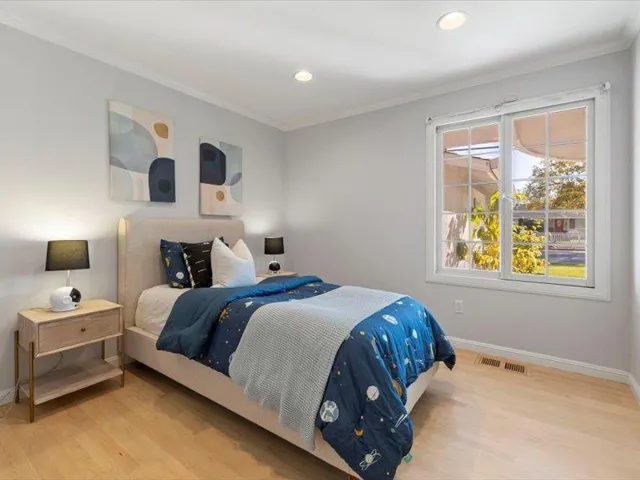 This beautiful 4-bedroom, 3-bathroom home offers 1890 sq ft of thoughtfully designed living space with an open floor plan and vaulted ceiling that fills the home with natural light. Elegant maple hardwood floors and skylights add warmth and charm throughout. The layout features both separate living and family rooms, perfect for everyday living and entertaining. Step out from the family room onto a gorgeous deck overlooking a serene backyard with mature fruit trees-an ideal space for relaxing and hosting guests. Conveniently located near highway 85. This home is just minutes away from saratoga village, downtown Campbell and downtown Los Gatos, offering comfort, Convenience and accessibility.