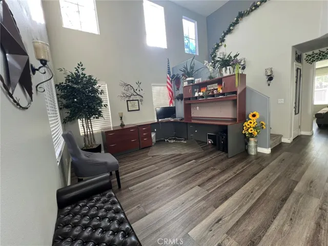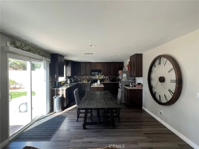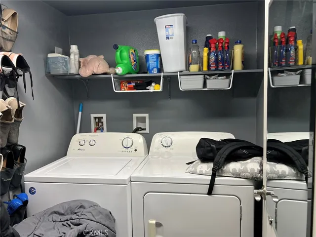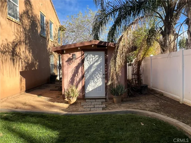 The kitchen offers generous space with new gray wood-laminate flooring, a center island, and abundant storage. Upstairs, you’ll find three well-sized secondary bedrooms and a full bathroom, along with the expansive primary suite. The primary bathroom includes a large walk-in closet, dual sinks, and its own linen closet for added convenience. Step outside to a backyard designed for enjoyment, complete with a large concrete patio, lush green lawn, palm trees, mow-curbing and storage shed. Property has solar with Tesla.