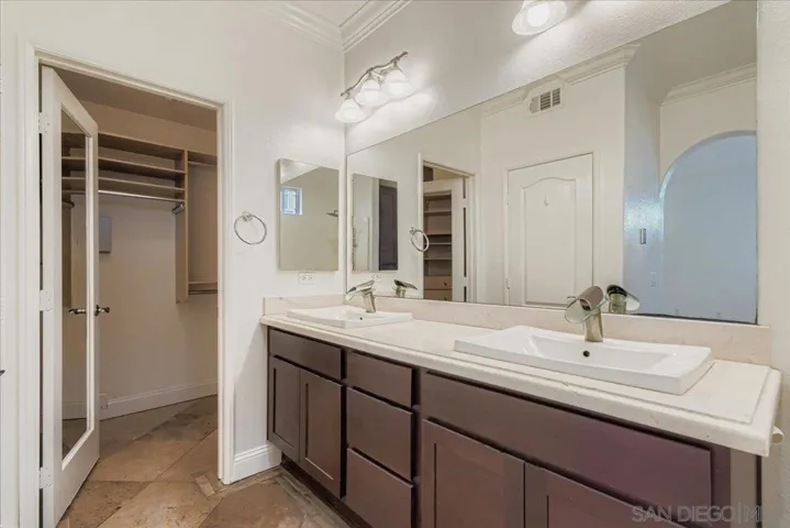 Welcome to this beautifully upgraded single-level corner condo that truly checks all the boxes. Offering 3 bedrooms, 2 bathrooms, and 1,320 sq ft of thoughtfully designed living space, this home blends modern finishes with everyday comfort in a way that feels elevated yet welcoming. The open living and dining area is filled with natural light and opens to a spacious front balcony, perfect for morning coffee or evening relaxation. Canadian Maple wood flooring runs throughout the main living spaces, complemented by Italian tile at the entry and timeless designer details. The kitchen is both stylish and functional, featuring granite countertops, a breakfast bar for casual dining, stained cabinetry with adjustable shelving, and stainless-steel appliances, including a new refrigerator, microwave, oven, and range. A built-in desk adds flexibility for work-from-home needs or additional storage.The primary suite offers a peaceful retreat with an arched entry into the primary bath, where you’ll find upgraded countertops, upgraded sinks and fixtures, and heated floors for a spa-like feel. The secondary bathroom continues the elevated look with stone tile and quality finishes. Additional features include a whole-home water softener system, built-in surround sound speakers in the living room, newer central air and heating, a newer water heater, fire sprinklers, and smart-home conveniences throughout. A rare highlight is the direct-access, full-size two-car garage, fully drywalled and finished with storage space, a new smart garage door opener, and two additional side-by-side parking spaces, providing a total of four parking spots. Residents enjoy access to the Promenade community fitness room and BBQ pavilion, all within the centrally located Spectrum neighborhood of San Diego. With easy freeway access, nearby shopping and dining, and a YMCA and restaurants just two blocks away, this home offers contemporary, low-maintenance living in an unbeatable commuter-friendly location.