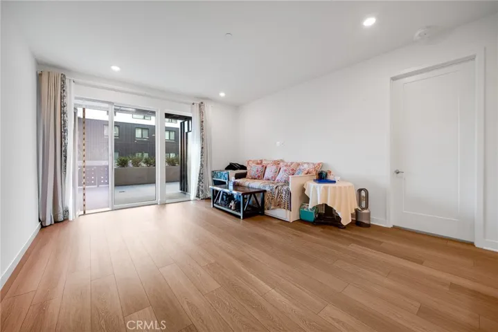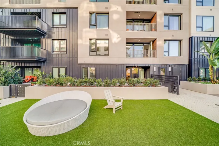 The residence is thoughtfully positioned away from street noise and features a spacious private terrace, ideal for relaxing, entertaining, or enjoying Southern California’s indoor-outdoor lifestyle. Inside, high ceilings and abundant natural light enhance the open layout, creating an airy and welcoming atmosphere throughout.