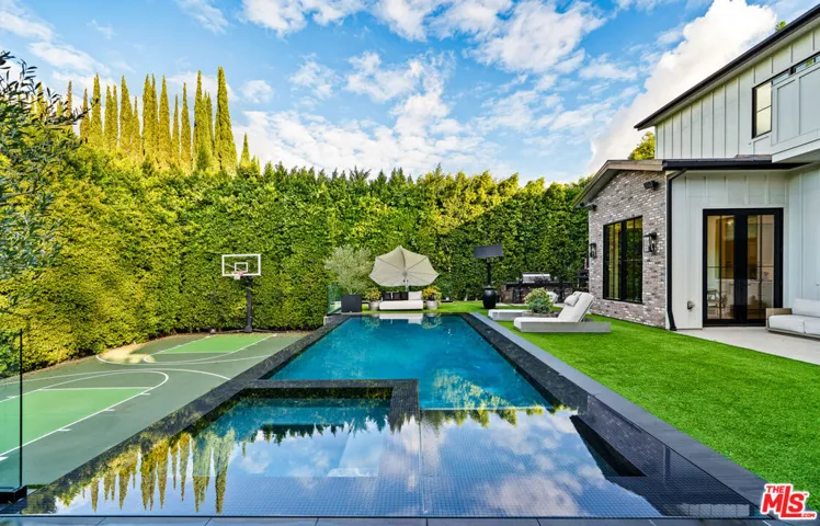 Situated south of Ventura Blvd in a coveted neighborhood of Encino, this newer construction traditional East Coast estate is Royal Oaks' masterpiece. Past the gated motor court and covered entrance with over size door, guests are greeted by a stunning two-story foyer and wide-plank European Oak floors. An elegant formal dining room features a beautiful built-in buffet and designer lighting. The gourmet Chefs kitchen showcases Cambria counters, double islands, 6-burner Wolf range, built-in Wolf espresso machine, Sub-Zero fridge, and adjacent family room with sliding glass wall to an incredible entertainers backyard. A designated home office, State of the art Movie Theater, and en-suite guest room complete the main level. Upstairs, the master suite has vaulted ceilings, fireplace, sliding glass wall, private balcony with views. incredible walk-in closet and a spa-like master bath with walk-in glass rain shower and soaking tub. Four additional upstairs suites offer wonderful accommodations. The Entertainers backyard centers around a sparkling pool and spa with infinity edge, pool cabana complete with fireplace, 2 story one-bedroom and gym, sports court, and full outdoor kitchen. Additional conveniences include a three-car garage, off-street guest parking, and proximity to fine dining, shopping, entertainment, and more.
