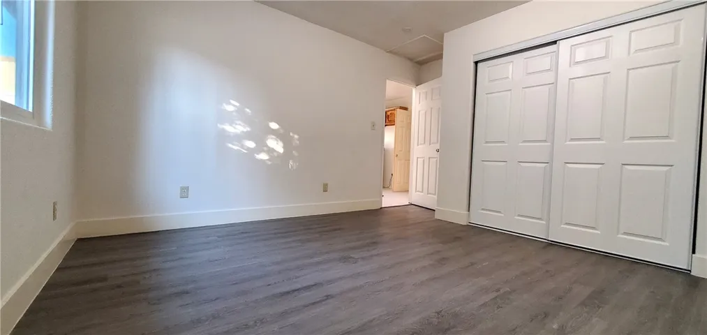 Great Studio unit with 2 Bedrooms, 1 Bath, no living room, new laminated wood floors in bedrooms, newer mini-split HVAC for Cooling/Heating, washer/dryer hookup in laundry area, tandem parking for 2 cars on the side of this unit, behind the double doors gate with a separate entry door.