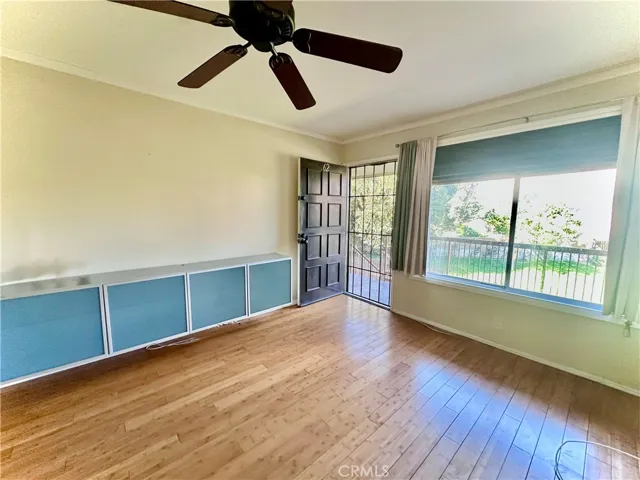 This upstair unit offers nice flooring, kitchen features stainless steel appliances, cabinetry, a dishwasher and refrigerator. The bedroom opens to a private shaded patio with desert and mountain views, wide closet and another walk-in closets w built-ins for added storage.