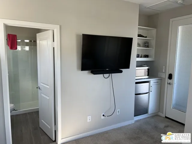 Single-story contemporary casita located within the guard-gated Rio Del Sol community. Built in 2022, this approximately 250 sq ft residence features an open floor plan with 9-foot ceilings and 8-foot doors, creating a bright and efficient living space. Offered fully furnished, the casita includes a queen Murphy bed, built-in desk, smart TV, and high-speed internet. Kitchenette equipped with microwave and compact refrigerator. Full bathroom features a modern glass-enclosed shower. Utilities included. Professional cleaning service provided every three weeks. One garage parking space available if needed, along with limited garage storage. Washer and dryer access available with prior notice. Backyard access and grill permitted. Rio Del Sol is a guard-gated community with mature landscaping, Spanish tile roof architecture, and a community lake with walking paths. 1 month minimum rental. No pets.
