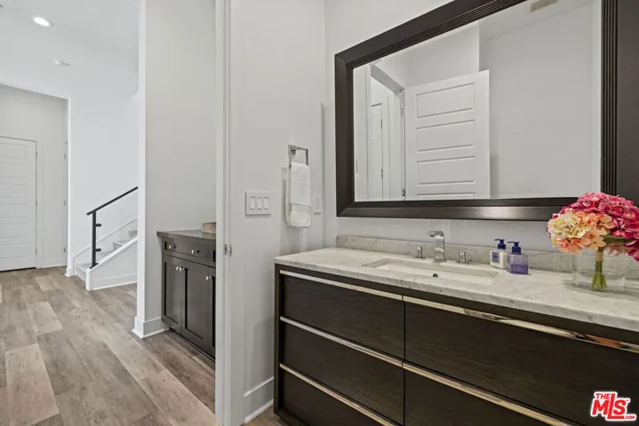 Stunning Ultra-Modern Estate in the exclusive 24-hour guard-gated community of Westcliffe in Porter Ranch Hills. Built in 2022 and situated on a coveted corner lot, this 5-bedroom, 6-bath estate with office, loft, and flex space showcases timeless upgrades, sleek design, and comes with custom designer lighting making it a true turnkey home.Upon entering through the majestic solid wood and glass front door, you’re welcomed by soaring 24-foot ceilings and a bright, open floor plan that feels like a private oasis. Expansive windows and large stackable doors flood the Great Room and chef’s kitchen with natural light, creating a seamless indoor-outdoor flow. The gourmet kitchen features designer appliances, a large stone island, quartz counters, and a full wet bar perfect for entertaining. The first level also offers a versatile office/media room, a flex space ideal for a gym, plus a guest bedroom and full bath.Upstairs, the luxurious Primary Suite serves as a retreat, complete with a spa-inspired bathroom featuring dual vanities, a rain shower, and spa-like soaking tub. Four additional bedrooms and a flexible loft complete the second floor. Designed for resort-style living, the entertainer’s backyard is a true showpiece featuring a sparkling pool and spa, a dramatic water wall feature, fire pit, and a fully equipped outdoor kitchen with stainless-steel BBQ and a custom Taj Mahal stone island, perfect for serving cocktails or hosting al fresco dinners. Multiple lounging and dining areas, manicured landscaping, and a vegetable garden complete this private oasis.This estate is also equipped with a fully integrated smart home system and owned solar panels, combining modern luxury with energy efficiency. With a two-car garage, high-end finishes throughout, and the rare offering of a fully furnished turnkey lifestyle, this residence perfectly blends modern architecture with the best of California luxury living.Conveniently located near The Vineyards shopping center, Whole Foods, AMC, award-winning schools, and easy access to the 118 freeway, this is a rare opportunity to own one of Porter Ranch’s most prestigious and breathtaking estates. Conveniently located near The Vineyards shopping center, Whole Foods, AMC, award-winning schools, and the 118 freeway, this is a rare opportunity to own one of Porter Ranch’s most prestigious and breathtaking estates.
