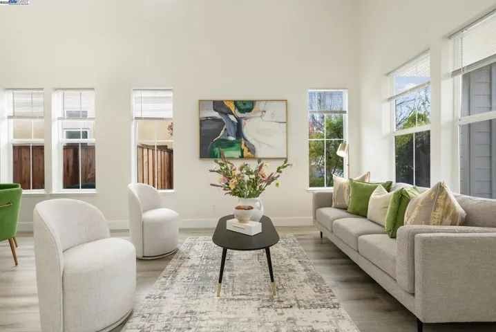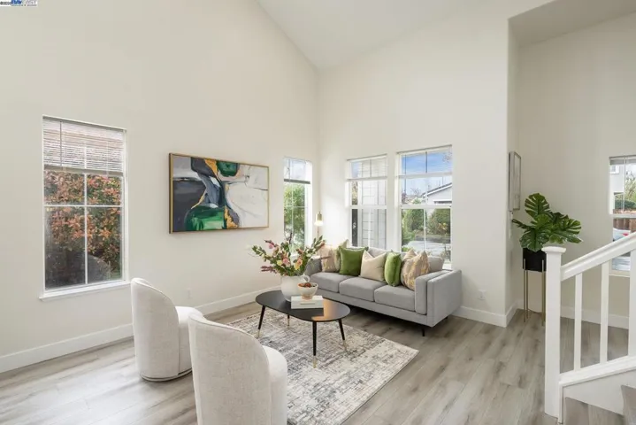 Stunning luxury home in East Dublin’s sought-after Summer Glen community, bathed in natural light and just a short walk to top-rated Dougherty Elementary-every buyer’s dream with young kids! This open floor plan features soaring ceilings and a newly updated gourmet kitchen with ample cabinetry, quartz countertops, a stylish backsplash, a huge island, and brand-new stainless steel appliances, including a built-in refrigerator. The home offers a spacious family room, living room, and dining area with a custom accent wall Boasting the area. 4 bedrooms plus a den/optional 5th bedroom and 3 beautifully updated bathrooms, this home includes a bedroom/den and a full bath on the main level. Enjoy updated laminate flooring throughout, recessed lighting, a stunning chandelier, fresh interior and exterior paint, and modernized bathrooms reflecting today’s trends. Additional features include leased solar, a water softener, custom paint, and epoxy flooring in the garage. Step outside from the kitchen into a beautifully landscaped backyard with mature palm and fruit trees—perfect for entertaining. Walk to shopping centers, restaurants, a theater, Wave Waterpark, Emerald Glen Park, and scenic waterfalls for peaceful strolls. Fallon Sports Park is just minutes away. Easy access to 580/680, BART.