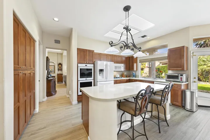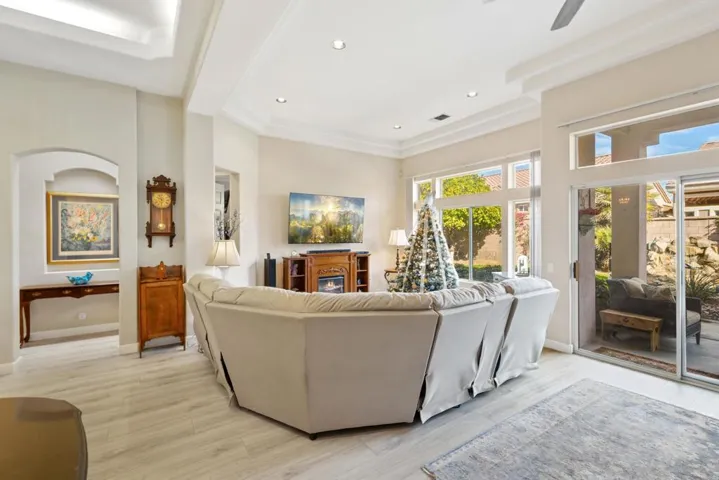 Imagine ringing in the New Year in a new home! This property is the ultimate gift to yourself for 2026. There is no better way to start your next chapter in the heart of Sun City’s premier 55+ community. Once you pass through the gated front entry and step through the double front doors, the entryway greets you with natural light, courtesy of the clerestory windows and elegant tray ceilings featuring custom accent lighting. Thoughtful design and spacious living in this ”Emerald” model which is celebrated for its open, flowing layout and generous proportions. This 3 Bedroom and 2 1/2 Bathroom home has a spacious living room and dining area which flows into the kitchen and family room featuring custom built-ins. The heart of the home features a large center island and a cozy breakfast nook for casual mornings. The home’s flexible layout Includes a dedicated private office, primary en suite with walk-in closet, soaking tub and shower. The over-sized guest en suite ensures your visitors enjoy privacy and comfort. Step outside and relax under the covered patio, perfect for al fresco dining while listening to the tranquil sounds of your personal waterfall feature. Plenty of storage for every hobby whether you’re a car enthusiast or a golfer, the garage setup is a dream. This property features a 2-car garage PLUS a dedicated golf cart/storage garage, offering ample room for your vehicles, tools, and gear. Enjoy world-class amenities just minutes from your door with a vibrant social calendar. Sun City is the ultimate community with multiple clubhouses, restaurants, fitness center, indoor and outdoor pools and spas, 2 championship golf courses, driving range, putting range, pickleball, tennis, bocce courts, library, theater, ballroom, on-site post office, coffee bar, dog park, softball field, plus approx. 80 clubs to join! Make this New Year your best one yet in a community that feels like a resort.