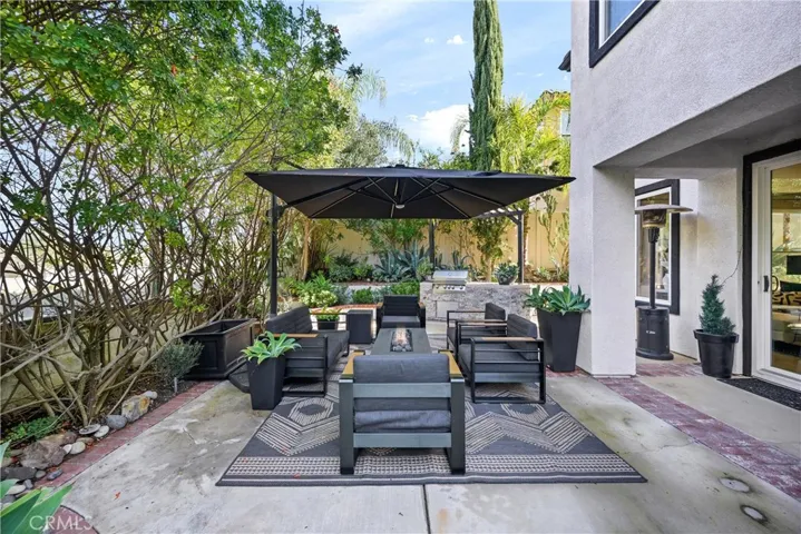 Welcome to 32986 Anasazi Drive, a refined contemporary home offering 4 bedrooms, a casita, spacious loft, flex space, and approx 3,428 square feet of thoughtfully designed living space. Privately situated on a cul-de-sac in the highly regarded Redhawk golf community, this impeccably updated, interior designer–curated home offers elevated finishes, a highly versatile floor plan, and serene views with no rear neighbors. A gated portico courtyard and custom wrought iron entry open to a grand foyer highlighted by a dramatic flared staircase and expansive living and dining spaces framed by wall-to-wall windows. The kitchen is designed for both form and function, featuring white cabinetry with crown molding, granite countertops, marble backsplash, an extended island, a walk-in pantry, newer appliances, a pot filler, a deep sink, and a custom-built-in bar with a refrigerator. The flexible layout includes a private-entry casita and a downstairs bedroom. Upstairs, the luxurious primary retreat offers a sitting area, separate vanity space, spa-inspired bath with a frameless marble shower, dual vanities, soaking tub, and an oversized walk-in closet with custom organizers. A generous loft presents the opportunity for a fifth bedroom, complemented by an additional flex space ideal for a study or reading area. The outdoor living space is framed by lush mature landscaping, creating a tranquil garden setting complemented by clean-lined concrete stepping stones, decorative river-rock hardscaping, a built-in Lion BBQ, and new vinyl fencing. Designed for entertaining and relaxation, the space blends natural beauty with modern, low-maintenance sophistication in a serene, private setting. Additional highlights include zoned HVAC, whole-house fan, water softener, automated kitchen blinds, designer lighting, and LVP water-resistant flooring upstairs. Just minutes from top-rated schools, Redhawk Golf Course, Old Town Temecula, Pechanga Resort, and renowned wineries, this exceptional home delivers privacy, elegance, and a lifestyle designed to be enjoyed.