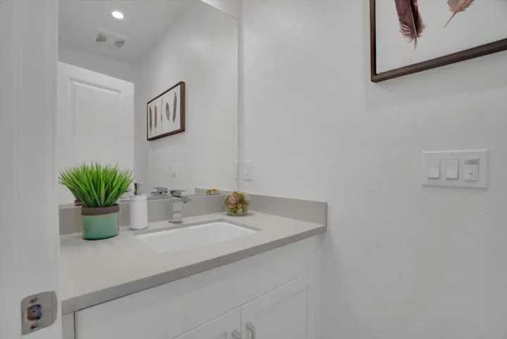 Located within the highly sought-after “Bellaterra by Summerhill” community, this stunning, practically brand-new residence offers the privacy of a single-family home with the low-maintenance lifestyle of a luxury townhome. Uniquely designed as a standalone structure, enjoy the peace, quiet and privacy of having no shared walls. The living area features a true open-concept design, perfect for entertaining. The chef’s kitchen features state-of-the-art Bosch stainless steel appliances, a gas range, and a built-in wine/beverage cooler. Centered by an oversized quartz island and breakfast bar, allowing for communal meals. Outside, a private patio oasis perfect for BBQ’ing under the string lights. A smart floor plan includes 2 spacious ensuite bedrooms upstairs. Downstairs, an office/bedroom and half bath ideal for guests or remote work. The lovely primary suite features a chic modern farmhouse slider door, a generous walk-in closet, and a lavish bath with a double vanity. All fixtures are high end and energy-saving, with features including a 220V EV charger, a tankless water heater, and super-insulated walls. Ideally located near major thoroughfares for easy commutes, yet just moments from vibrant downtown Los Gatos. Don’t miss this rare opportunity for turnkey luxury in Bellaterra!