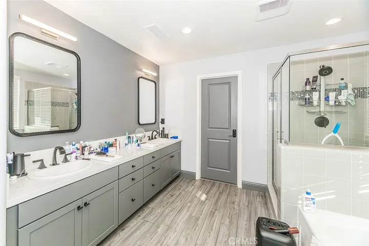 Upstairs, all four bedrooms are generously sized. The primary suite includes dual sinks, a soaking tub, and a walk-in shower. Guest bedrooms share a well-appointed full bathroom.