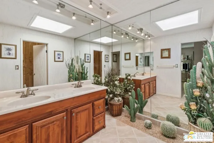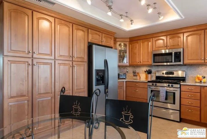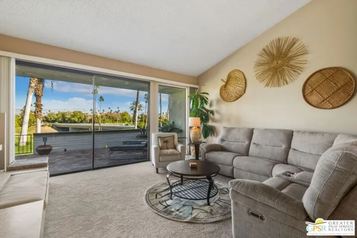 Wake up to sweeping fairway views in this highly desirable 300 plan located in Rancho Las Palmas Country Club in the heart of Rancho Mirage. This 3-bedroom, 2-bath home overlooks the 5th and 6th fairways of the North Course, offering a serene desert golf backdrop from the moment you step inside. Vaulted ceilings and abundant natural light enhance the open living spaces, while the remodeled kitchen shines with granite countertops, updated cabinetry, stainless steel appliances, and recessed lighting perfect for entertaining or relaxed everyday living. A charming interior atrium brings the outdoors in, creating a peaceful retreat at the center of the home. The pool and spa are conveniently located just across the street, and The River shopping center is right outside the gates, with popular restaurants, boutiques, and a movie theater just steps away. This is true desert resort living at its best don’t miss the opportunity to experience it in person.