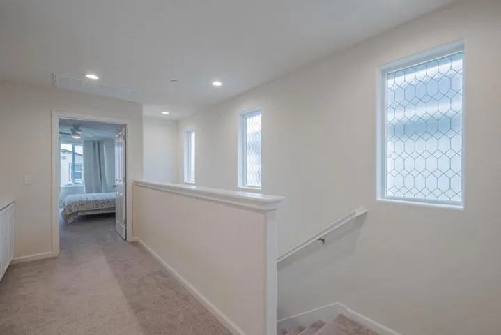 Welcome to this charming home in the fabulous East Garrison neighborhood of Marina, boasting 1,646 sq ft of living space and situated on a lot of 2,232 sq ft. This property features three bedrooms, including a master suite with a walk-in closet, and two full bathrooms with modern amenities such as double sinks and a primary stall shower. The kitchen is a highlight, equipped with granite countertops, a gas oven range, microwave, refrigerator, dishwasher, and pantry, perfect for culinary enthusiasts.The home offers a spacious dining area in the living room, complemented by laminate and carpet flooring throughout. Enjoy the convenience of a large upper floor laundry room with washer and dryer included. The property is designed with a central forced air heating system and ceiling fans for comfort. Additional features include a two-car garage, high ceilings, and energy-efficient tankless water heater. This residence falls within the Monterey Peninsula Unified School District, providing educational options for families in the area. Neighborhood amenities abound including scenic valley view paths, sport courts, playgrounds and close access to Fort Ord National Monument recreation opportunities- hiking, biking and running.