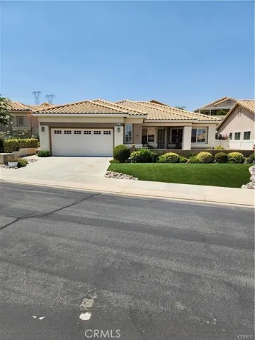 Pour yourself your favorite beverage and set back and enjoy the view of Mt. San Gorgonio from your front courtyard – taking in this beautiful site and enjoy the conversation you might have with your neighbors and friends. When you’re finished relaxing, come and play the 18-hole professional course here at Sun Lakes and partake in the enjoyment of playing on a well maintained and picturesque golf course. If this course seems to be challenging – then play the Executive 18-hole golf course that offers similar breathtaking views and challenges. If golf isn’t your bag – then how about playing tennis on the renovated tennis courts near the South Club house. If tennis isn’t your interest, how about playing pickleball on the renovated pickleball courts near the North Club house. If tennis or pickleball isn’t your cup of tea – try relaxing at the large pool and spas located at the main club house, north club house, or the in-door pool and spa at the South Club house. There’s a saying here at Sun Lakes Country Club – if you’re bored, it’s your fault” because if you have a interest, there probably is a club you can join. Having tried out the different facilities – ranging from golf, tennis, pickleball, bocce ball, weight rooms, hobby rooms, entertainment center, exquisite on-site restaurant and sand wedge sandwich shop, and now you need to relax – ENJOY THE UPGRADES AND EVEN MORE UPGRADES your new home: 3 bedrooms, Den/bedroom and 2 1/2 bath. As stated, this home has upgrades galore, starting with 18” porcelain tile in the entry, hall, kitchen, bath and laundry, with upgrade carpets, professionally installed plantation shutters, ceiling fans throughout, quartz countertops and splash guards, and white Euro cabinets, new garbage disposal, new water heater and circulation pump. Your entry has a professionally designed front courtyard where you can enjoy your morning coffee and mountain views, and the back yard has a full-length covered patio with outdoor fan and a professionally installed bar and barbeque set, which you can enjoy entertaining your friends and family. In addition, the owner has had a new roof installed and has had the eves, trim and gutters recently professionally painted. This model (Sunflower) has a 2-car expanded garage (for your golf cart storage). Even more exciting, Sun Lakes doesn’t have any Melo Ross as does all new construction in Banning and Beaumont areas!