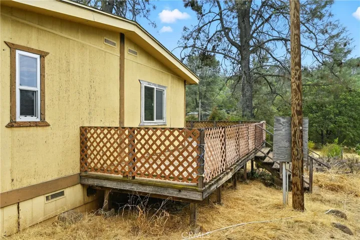 The property includes a 2 bedroom, 2 bathroom manufactured home with an attached carport, large deck for sunset views, and a kitchen with brand new stainless steel appliances. The home is move-in ready and well-situated to enjoy the surrounding land and views.