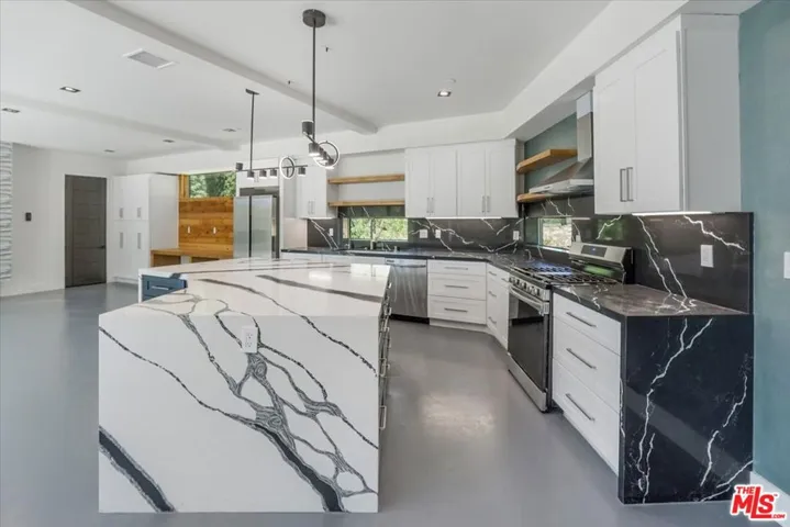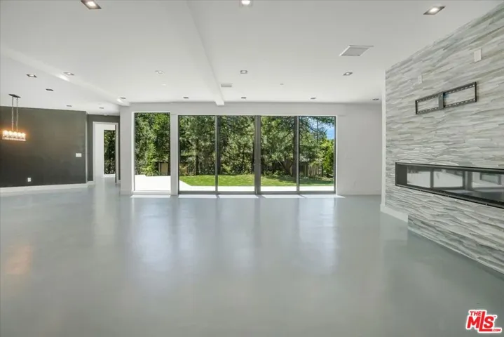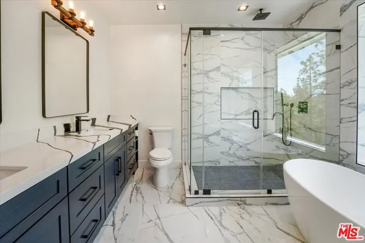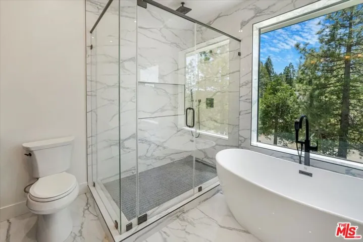 Discover this newly built, stylish two-story contemporary home in the esteemed North Bay area, offering a fresh and inventive approach to mountain living. Positioned on a level corner lot at the end of a cul-de-sac, the home enjoys seclusion under a canopy of immaculate trees. Expansive sliding doors define the entire open-concept design, creating the street-level facade. Features include high beamed ceilings, custom 8-foot doors, a sleek 8-foot wide horizontal fireplace, and a floating staircase, along with a spacious street-level bedroom and full spa bathroom. A natural stone-embedded concrete patio stretches the length of the home’s exterior, featuring a Zen garden and a pad for a jacuzzi at the end.Upstairs, four additional bedrooms and two baths offer breathtaking mountain and forest views, complemented by expansive decks. The unique primary bedroom boasts an open floor plan with a custom “loft” style wall separating the bedroom area from a vast walk-in/open closet. The exterior walls, constructed from reclaimed wood, are paired with state-of-the-art products and building materials, including solar panels and automated temperature control. Additional features include an electronic front door and an electric car charger. This energy-efficient smart home stands out as a rare gem in the Mountain Resort Communities of Lake Arrowhead.