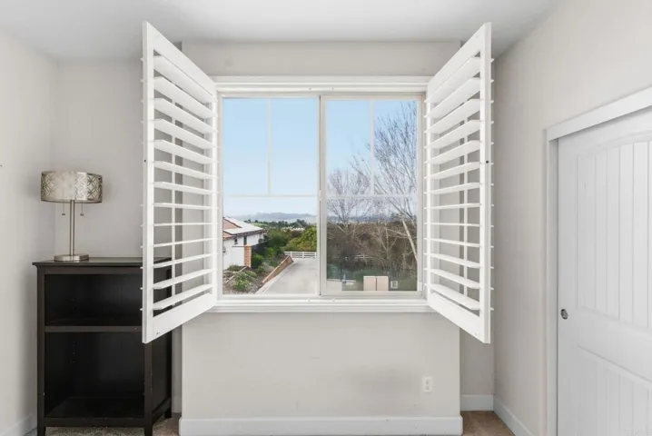 Welcome to one of the largest and most desirable floor plans in the quiet, gated Laurel Pointe community of Vista. Owned by the original owner and thoughtfully customized from the start, this beautifully upgraded 6 bedroom, 3.5 bathroom residence offers approximately 4,200 square feet of well designed living space, making it a rare opportunity within the neighborhood. Laurel Pointe is highly regarded for its peaceful atmosphere, gated security, and sense of privacy. This home is ideally positioned with only two neighboring properties and no homes directly in front, allowing for open north facing mountain views and a calm, private setting that’s hard to find. The exterior is designed for low maintenance living, featuring turf landscaping in the front yard, stamped concrete surrounding the home, retaining walls on both sides, and an enclosed outdoor patio room, creating a private and versatile space for relaxing or entertaining. Energy efficiency is another standout feature, with leased solar, dual pane windows, and an efficient layout that helps keep utility costs manageable. Inside, the home opens to a bright and inviting floor plan anchored by a spacious, upgraded kitchen that truly serves as the heart of the home. The kitchen features extended granite countertops, an oversized granite island, soft close cabinetry, stainless steel appliances, and a large walk in pantry with additional counter space, making it ideal for both everyday living and hosting. Elegant upgrades continue throughout the home, including polished wood staircase railings, a whole home intercom and doorbell system, and built in surround sound speakers in the main living areas for an elevated entertainment experience. The main level offers excellent flexibility with a full bedroom, full bathroom, and a dedicated office or den, all complemented by plantation shutters that add warmth and style. Upstairs, the layout is both spacious and functional, featuring a large loft, a custom bonus room approximately 20 by 18 feet with built in cabinetry, two additional bedrooms, and a convenient upstairs laundry room with sink. The primary suite is a true retreat, highlighted by a beautifully upgraded custom tiled shower, while ceiling fans in multiple bedrooms add comfort throughout. Additional highlights include abundant storage, a freshly repainted garage, and a tankless water heater. The location further enhances the appeal, with the home within walking distance to Guajome Park Academy, a highly regarded K–12 public charter school, as well as Vista Sports Park, which offers synthetic turf fields, baseball and softball fields, a community center, playgrounds, picnic areas, walking trails, and ample parking for year round recreation. Centrally located in North County, the home sits between the 76 and 78 freeways with convenient access to both the 5 and 15, making it easy to commute while still being just a short drive from the beach and everything Vista and the surrounding areas have to offer. This home stands out for its size, privacy, thoughtful upgrades, and prime location within one of Vista’s most sought after gated communities. It offers a rare combination of space, comfort, energy efficiency, and lifestyle.