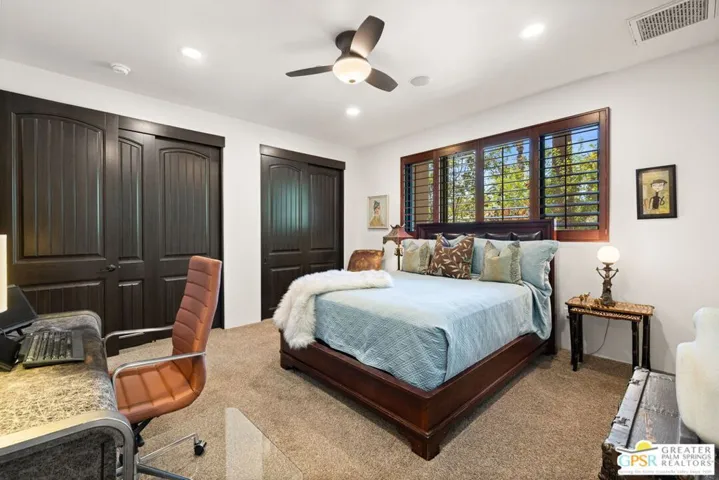 One-of-a-kind designer residence located within blocks of Downtown Palm Springs redefines luxury! Located in South Palm Springs, this Tahquitz River Estates property is a flawless fusion of timeless craftsmanship and modern sophistication delivering an extraordinary lifestyle experience that is serene, private, and undeniably stylish! Inside, expansive 10-foot ceilings, curated designer finishes, and a true indoor-outdoor flow create an atmosphere that is both elevated and effortless. The gourmet kitchen with newly installed appliance suite is a showstopper, equipped with a prep island, induction cooktop with pot filler, double ovens, built-in refrigerator, and rich wood cabinetry all anchored by a rare 1930s French chandelier that casts a warm, vintage glow over the dining space. The level of detail and thought throughout the home is unmatched: heated floors in the primary bath, handcrafted Saltillo tile, solid-core doors, fire sprinklers, designer lighting, and custom millwork throughout. A comprehensive list of upgrades includes a fully owned 48-panel solar system, dual tankless water heaters, a whole-home water filtration system, central vacuum (2024), whole-house sound, and two newly installed HVAC systems all designed for ease, efficiency, and long-term comfort. Step outside and discover your private resort: a glass-tiled pool and spa with heating and cooling functions, surrounded by lush landscaping inspired by the Tuscan countryside including 10 pomegranate trees, 6 mature olive trees, and commercial-grade evening lighting. Gather under the stars with a custom pizza oven, built-in BBQ, fire pit, and outdoor shower perfect for unforgettable desert evenings. Even the garage is elevated, featuring epoxy flooring, mini-split climate control, overhead storage, and custom cabinetry for ultimate functionality. Sited on fee land (you own it) and just moments from downtown Palm Springs, world-class restaurants, galleries, hiking trails, and golf, this home is more than just a residence it’s a statement of refinement, comfort, and inspired desert living.