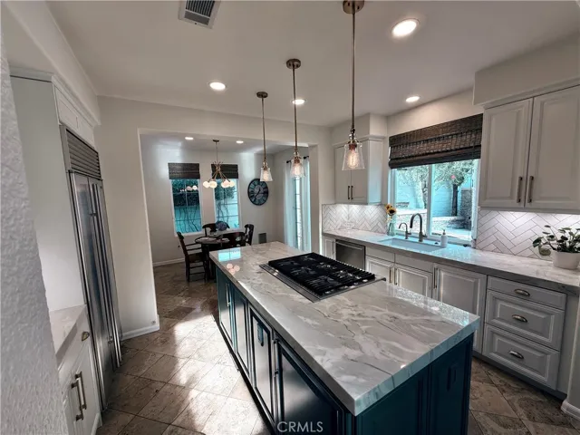 Situated on a premium, oversized corner lot in one of Newport Coast’s most desirable family-oriented neighborhoods is 32 Marisol! This expanded Amalfi model (Plan 1) has been meticulously maintained by the original owner, reflecting true pride of ownership throughout. Its location is ideal for families, offering a direct path to Newport Coast Elementary that avoids public roads and sidewalks, never having to cross a street to enter the school. The home beautifully blends comfort and style. The open, flowing floor plan features an expanded great room with 20-foot ceilings that transitions seamlessly into the kitchen, making it perfect for social gatherings. With three distinct dining areas, including a formal dining room, built-in cabinetry, and an upgraded high-heat fireplace, the home is designed for entertaining. The chef’s kitchen is equipped with a six-burner Thermador cooktop, a Thermador wall oven, and a 42″ Sub-Zero refrigerator, all complemented by recently remodeled quartzite natural stone countertops and herringbone backsplashes. The main level includes a private, tucked away guest bedroom and a recently remodeled bathroom completed with a shower. Upstairs, the primary ensuite features built-in cabinetry, coffered crown millwork, a large soaking tub, separate shower, two individual vanities, and nightly peek-a-boo views of the Disneyland fireworks. Two additional bedrooms, a full bath with dual vanities, and a built-in office nook complete the upper level. The private backyard serves as an outdoor oasis. Its centerpiece is a natural ledgerstone gas fireplace, complimented by a flagstone patio. The 36″ natural gas barbecue is perfect for evening cookouts. Full landscape lighting compliments both the front and back of the home. The property features a private driveway with parking for two, two single-car garages, and ample street parking. Residents of the Tesoro community enjoy a pool, spa, and barbecue area just one short block away. Additionally, the very nearby Newport Coast Community Association Clubhouse provides resort-style amenities, including a Junior Olympic pool, spa, tennis and pickleball courts, basketball, a dog park, and a playground, all set within a beautiful canyon landscape. Experience the quintessential Newport Coast lifestyle at 32 Marisol in Tesoro Villas! Just moments away from top rated schools, world class shopping and dining, golf, beaches, John Wayne Airport and the Toll Road. This property is not to be missed!