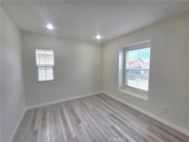Located extremely close to Lake Perris, this beautiful 3 bedroom, 2.5 bathroom house has beautiful luxury vinyl plank flooring all throughout. Living area is very spacious and open to kitchen with an area for dining. Recessed lighting throughout the home. Kitchen with brown shaker style cabinets, stainless steel appliances and access to very large backyard. Half bathroom downstairs. All bedrooms up stairs, spacious one with walk in closet. Master also with walk in closet and an ensuite bathroom. Washer and Dryer Hookups upstairs in separate room with cabinet space. 2 Car garage and drive way parking.