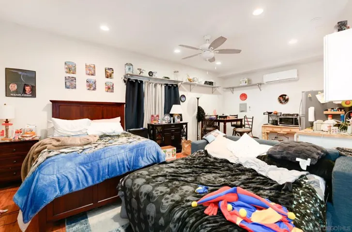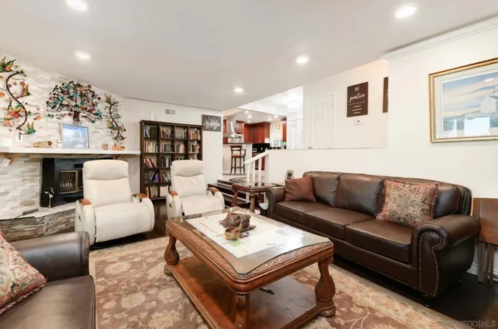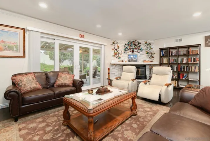 LAND OF OPPORTUNITY. Flexible floorplan with attached ADU. Separate rental unit+1 more that could also be an ADU * Excellent multi generational, also has been used as sober living/medical detox house. * Upgrades galore * Newer modern kitchen * Newer windows * Stone FPLC * Not original newer floors, Recess lighting * Updated HVAC/A/C * Paid Solar! * Copious amount stamped concrete-Driveway , patios, walkways, deck * Huge covered patio, separate deck * Large 2 car garage * Storage shed * Huge motorhome space with cover * Dead end street, gated driveway, ample parking for cars, toys * Wonderful large lot, stucco wall, EZ care grass * EZ access to freeway, Village * Country in City
